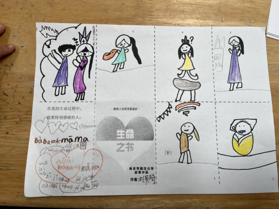 创作环节里,学生用彩笔将抽象的幸福具象为大小不一、色彩各异的泡泡,或画场景或写关键词。每一幅作品都承载着对幸福的独特诠释,成为“润心行动”的鲜活注脚。