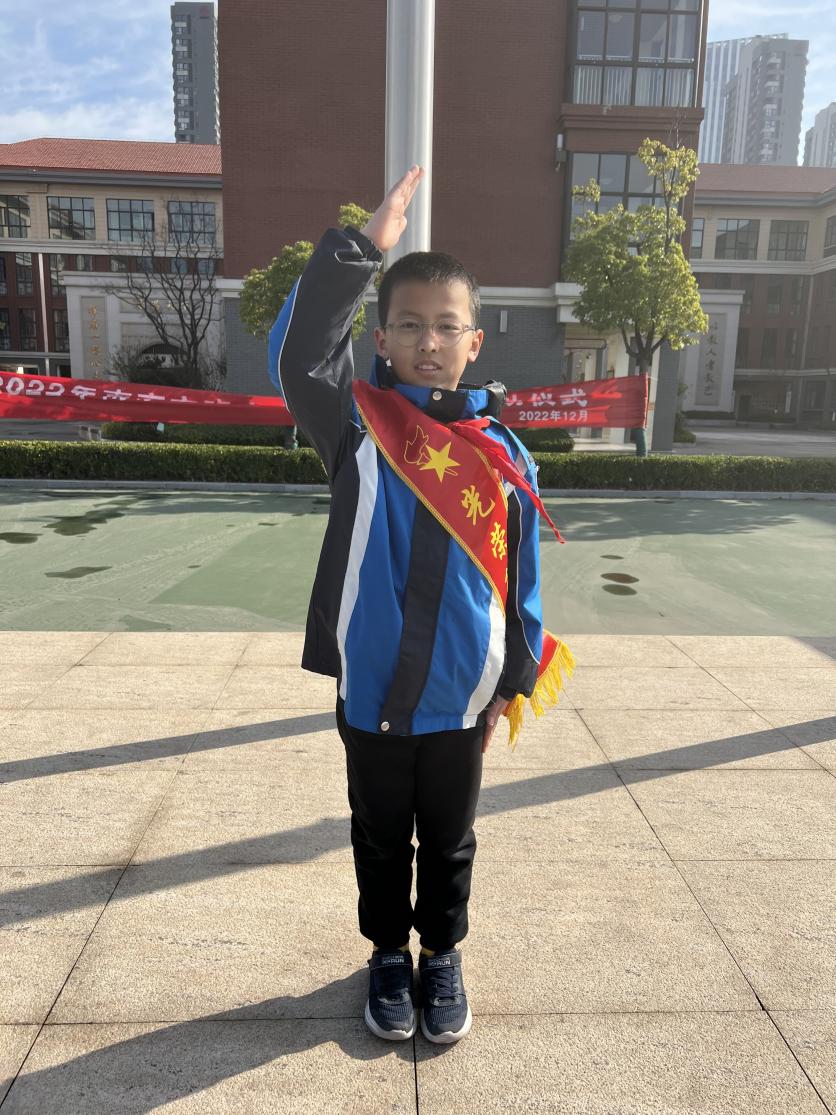 尊敬的老师、亲爱的同学们,大家好!我是来自四(4)中队的唐梓雯,现任大队部学习委员,十分荣幸能够担任本周的升旗手。我是一个心地质朴、勤奋好学的女孩。学习上我能做到各门功课齐头并进;课堂上我专心听讲,善于思考,积极发言;课后我能及时复习,按时完成作业。我的兴趣爱好广泛,绘画、跳舞、竖笛,这些都是我的强项。作为新时代的少先队员,我明白今天的学习生活来之不易,所以我们更要以积极向上的心态刻苦学习,为祖国的建设添砖加瓦!