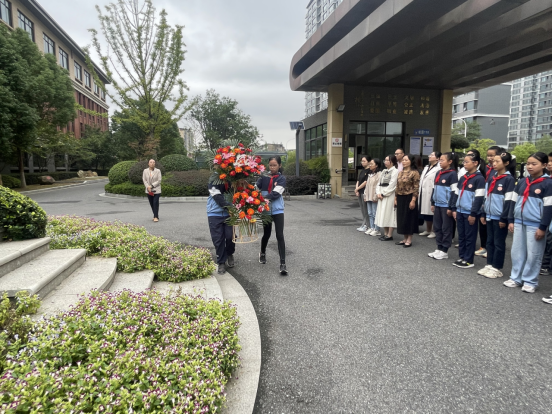 致辞结束后,学生代表缓步走向陶行知先生雕像,将鲜艳的花篮敬献于雕像前。鲜艳的花篮寄托着师生们对先生的深切缅怀,也象征着先生的教育精神在晓庄小学代代相传。最后,全体人员向雕像三鞠躬,以最质朴的方式表达对这位教育巨匠的崇高敬意。