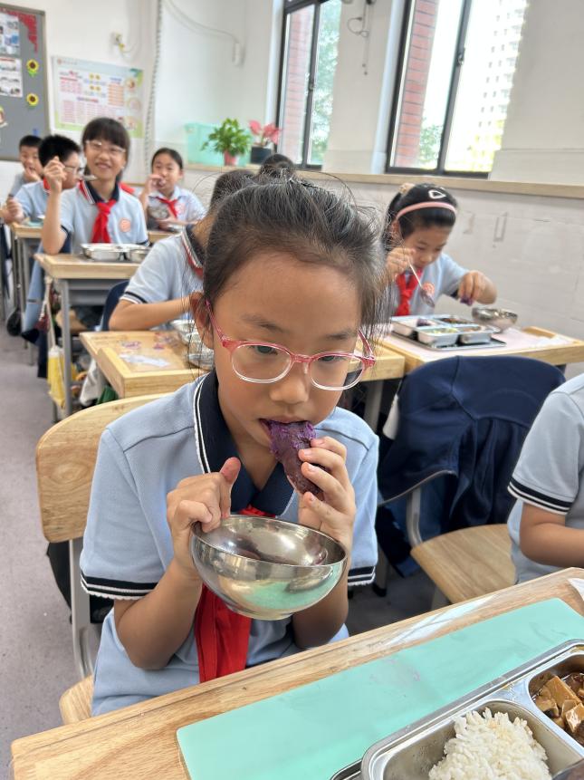 贴心的姚爷爷,将同学们挖出的红薯洗净,蒸熟,分给大家品尝,红薯的甜蜜渗进了每个人的心里。