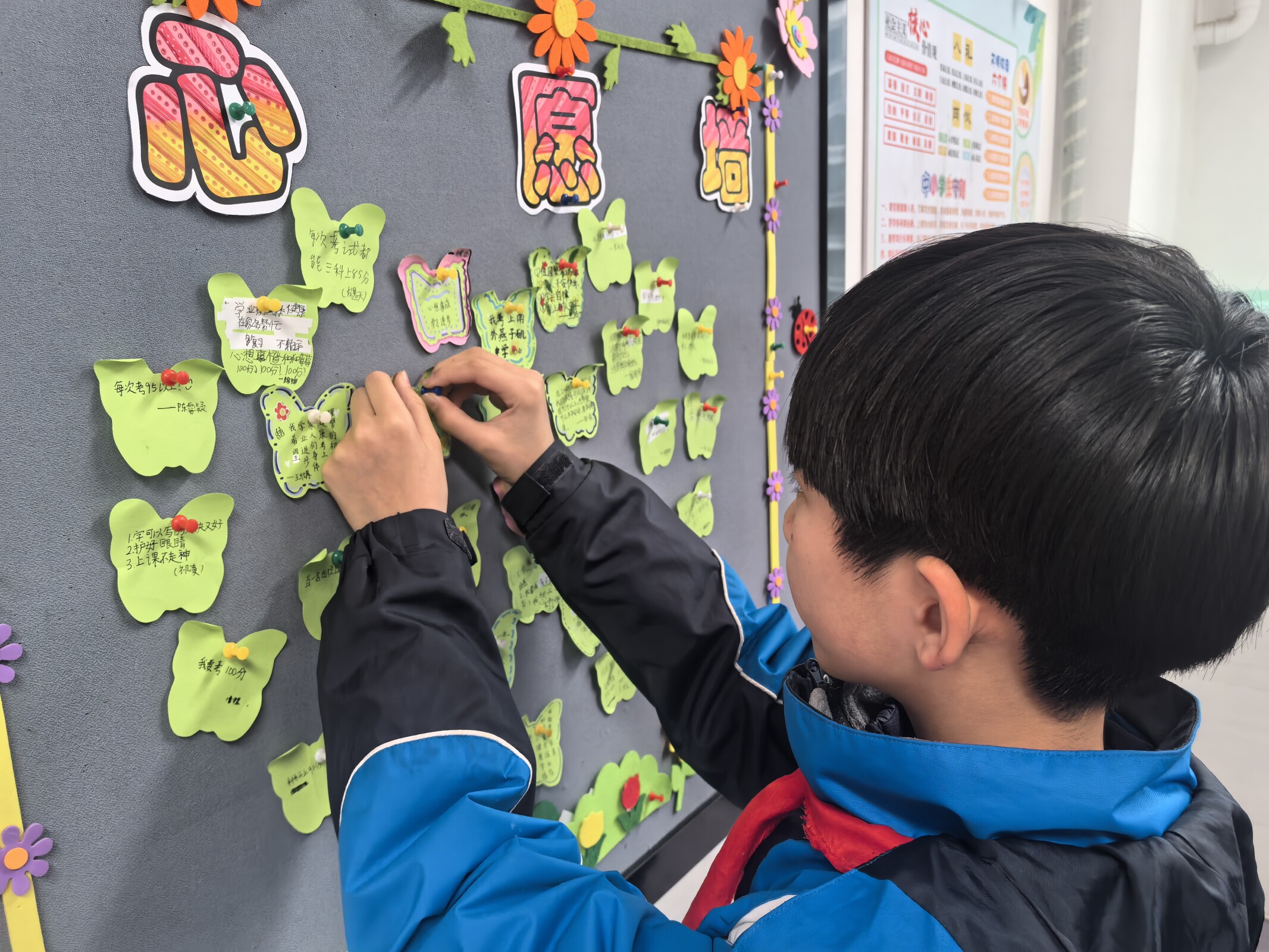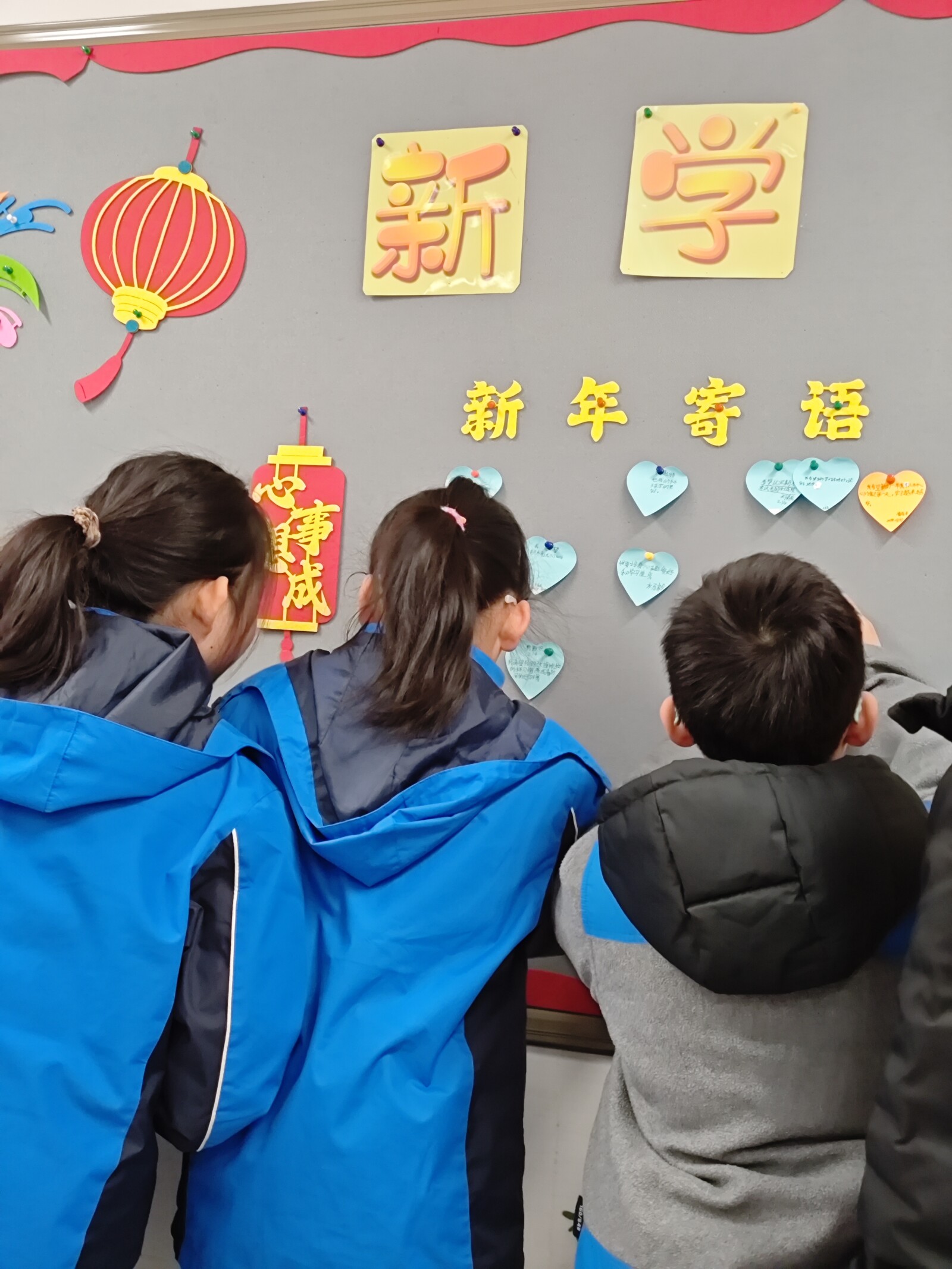 各班教师与学生共同设计了一面充满创意的“心”愿墙。学生们在彩色便利贴上认真写下自己的新学期愿望,有的希望“提高数学成绩”,有的期待“交到更多好朋友”,还有的立志“学会一项新技能”。一张张便利贴承载着孩子们的美好憧憬,贴满了整个“心”愿墙,成为教室里一道亮丽的风景线。