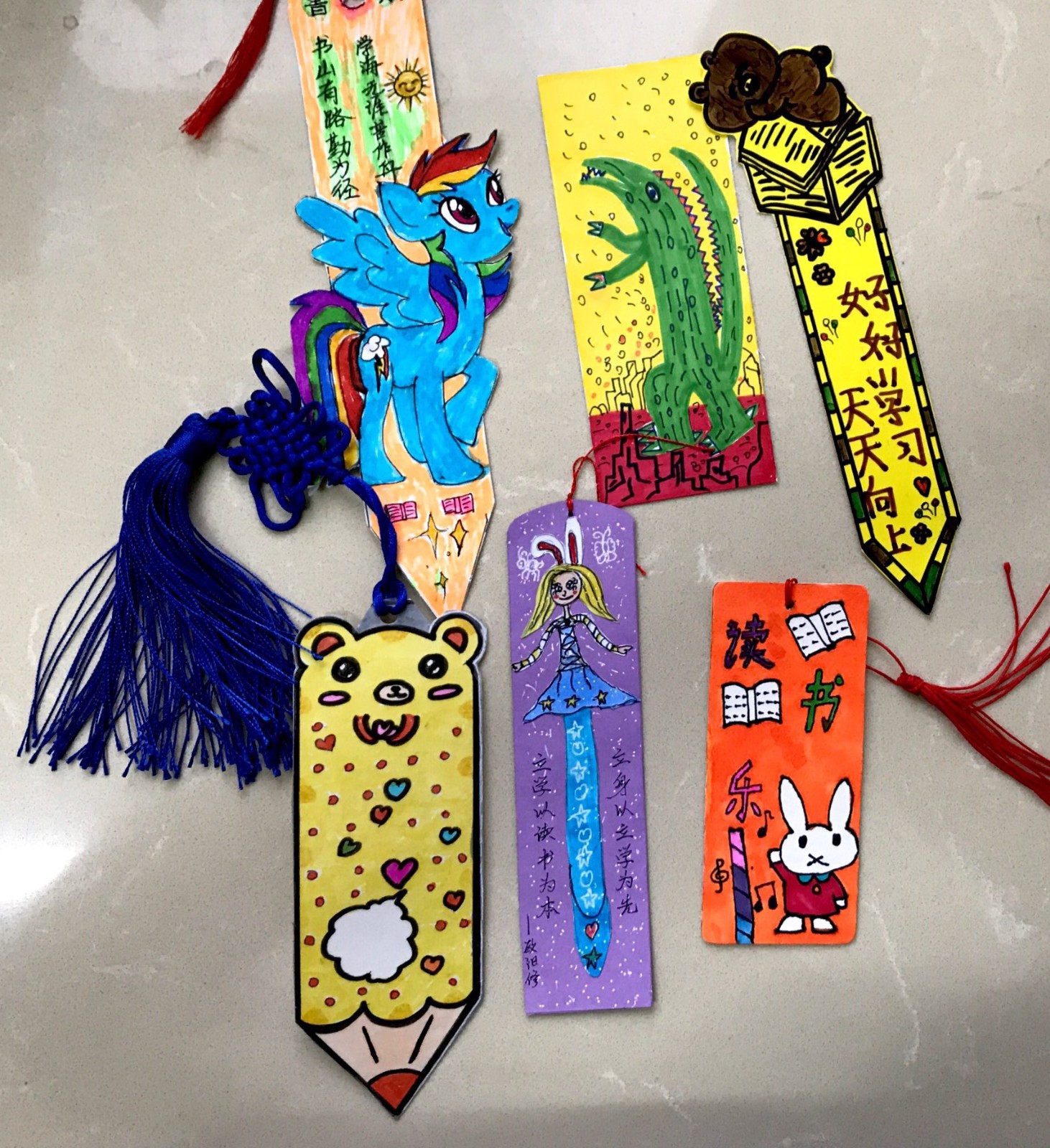 本次活动受到了全体学生的欢迎,比赛的参与率较高。同学们积极开动脑筋,发挥自己的想象能力,围绕读书的主题,用自己的一双灵巧手制作出来了形式多样,色彩斑斓,内容丰富的创意书签。